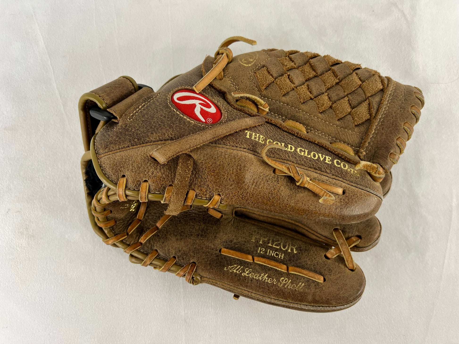 Baseball Glove Adult Size 12 inch Rawlings Tan Leather Fits on Left Hand Excellent