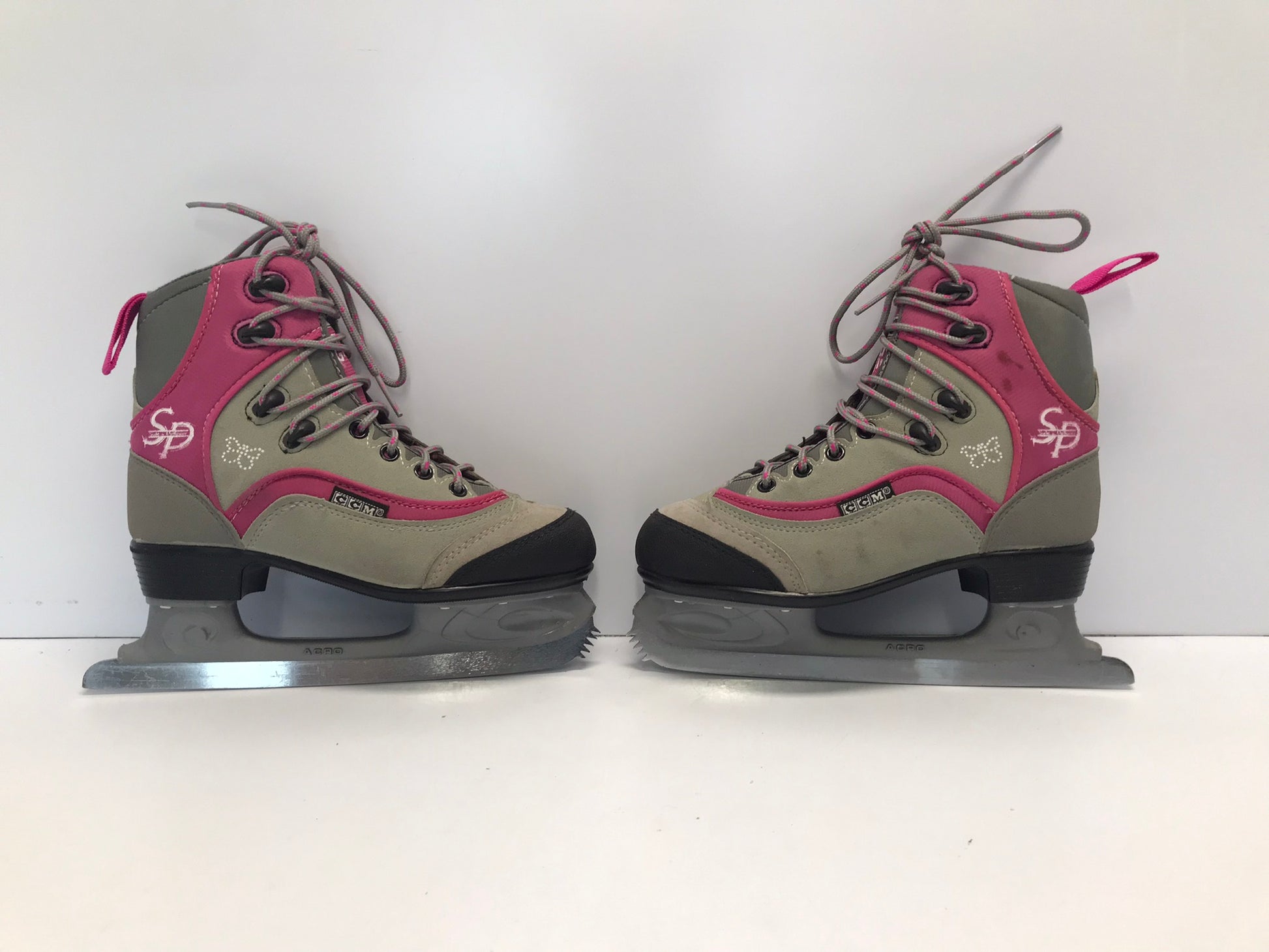 Figure Skates Child Size 4 CCM Jamie Girl Soft Skates Grey Pink