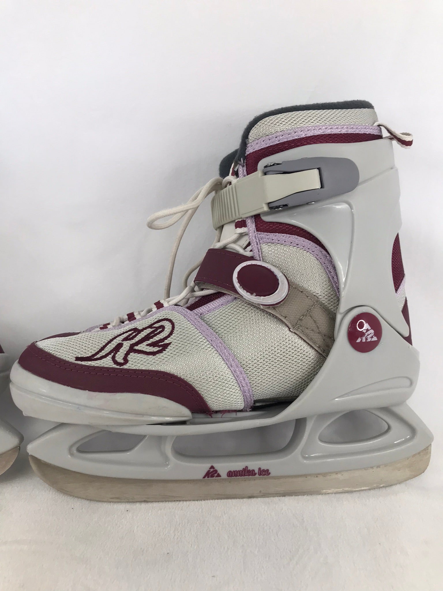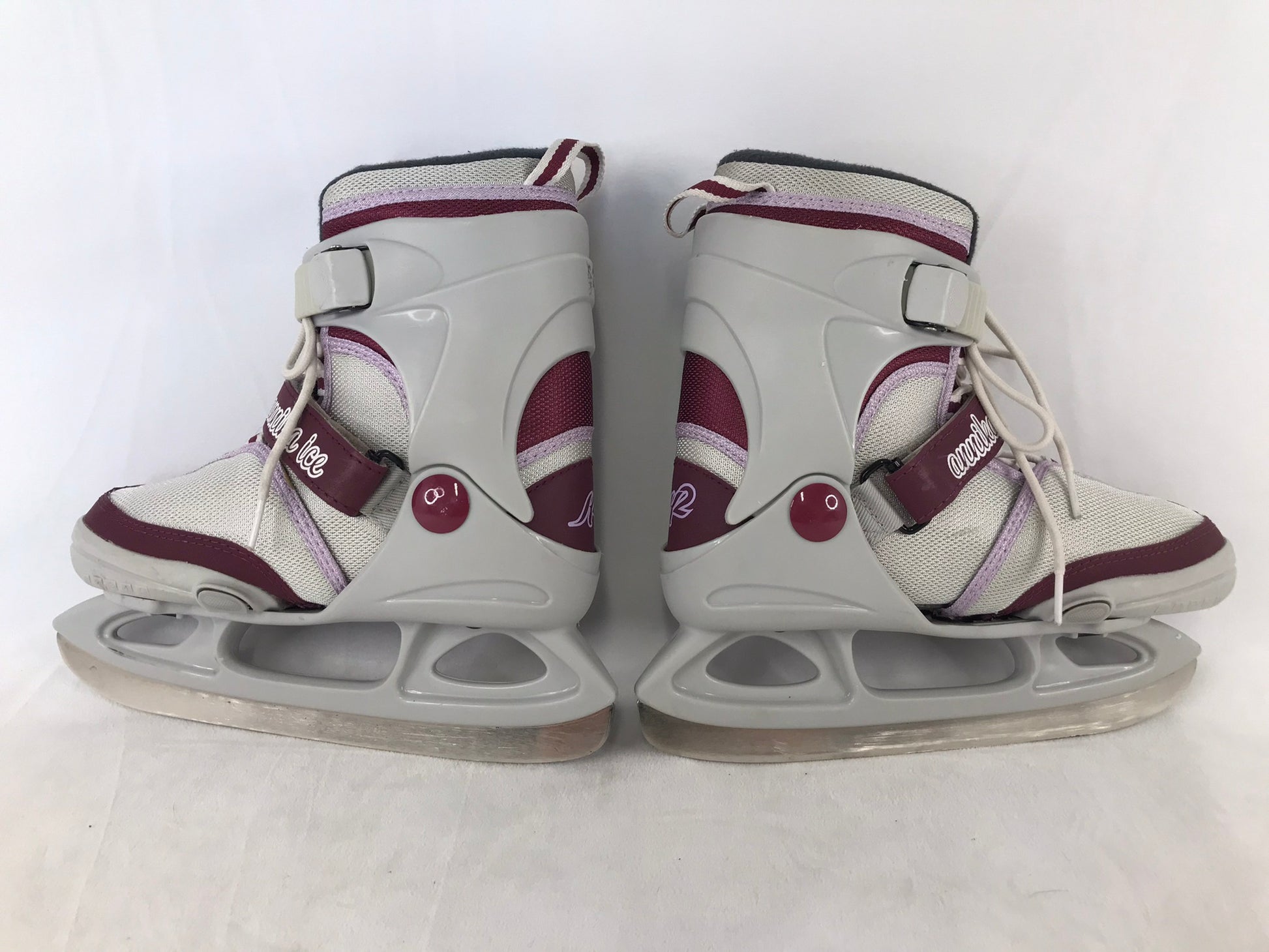 Ice Skates Child Size 1-5 K-2 Soft Skates Adjustable Burgundy Grey As New
