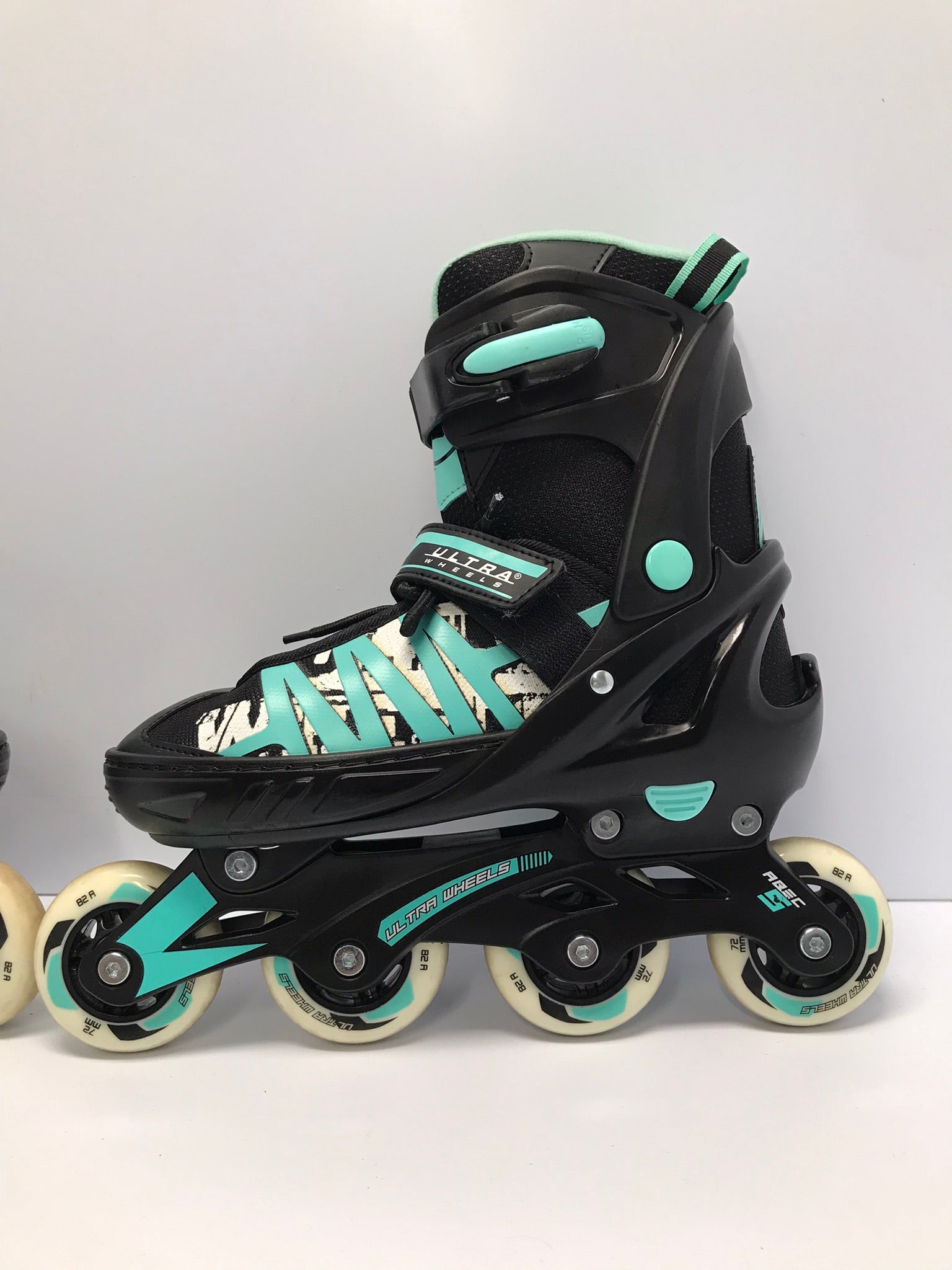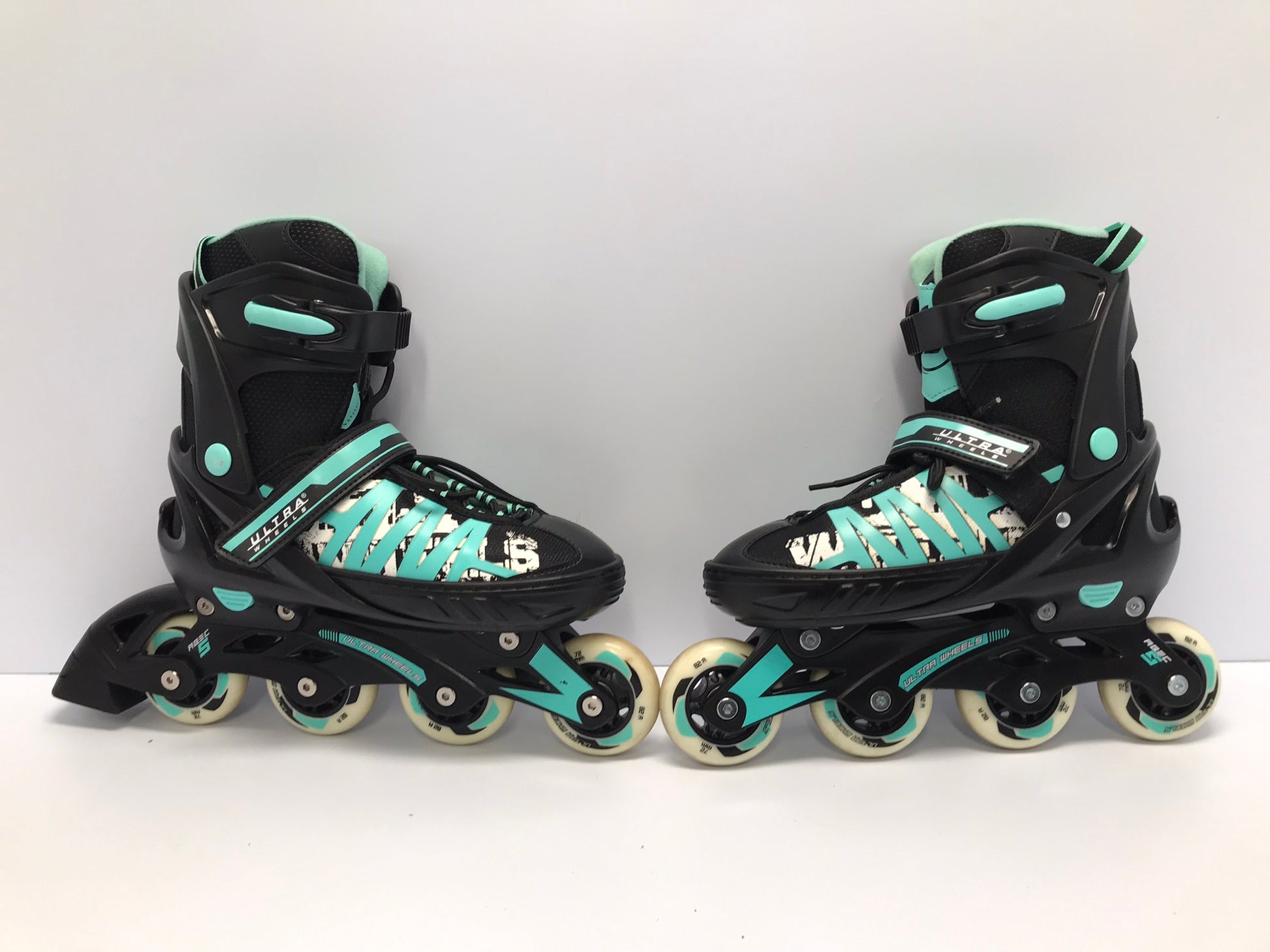 Inline Roller Skates Ladies Size 9-11 Adjustable Ultra Wheels Rubber Wheels Black Teel New Demo Model