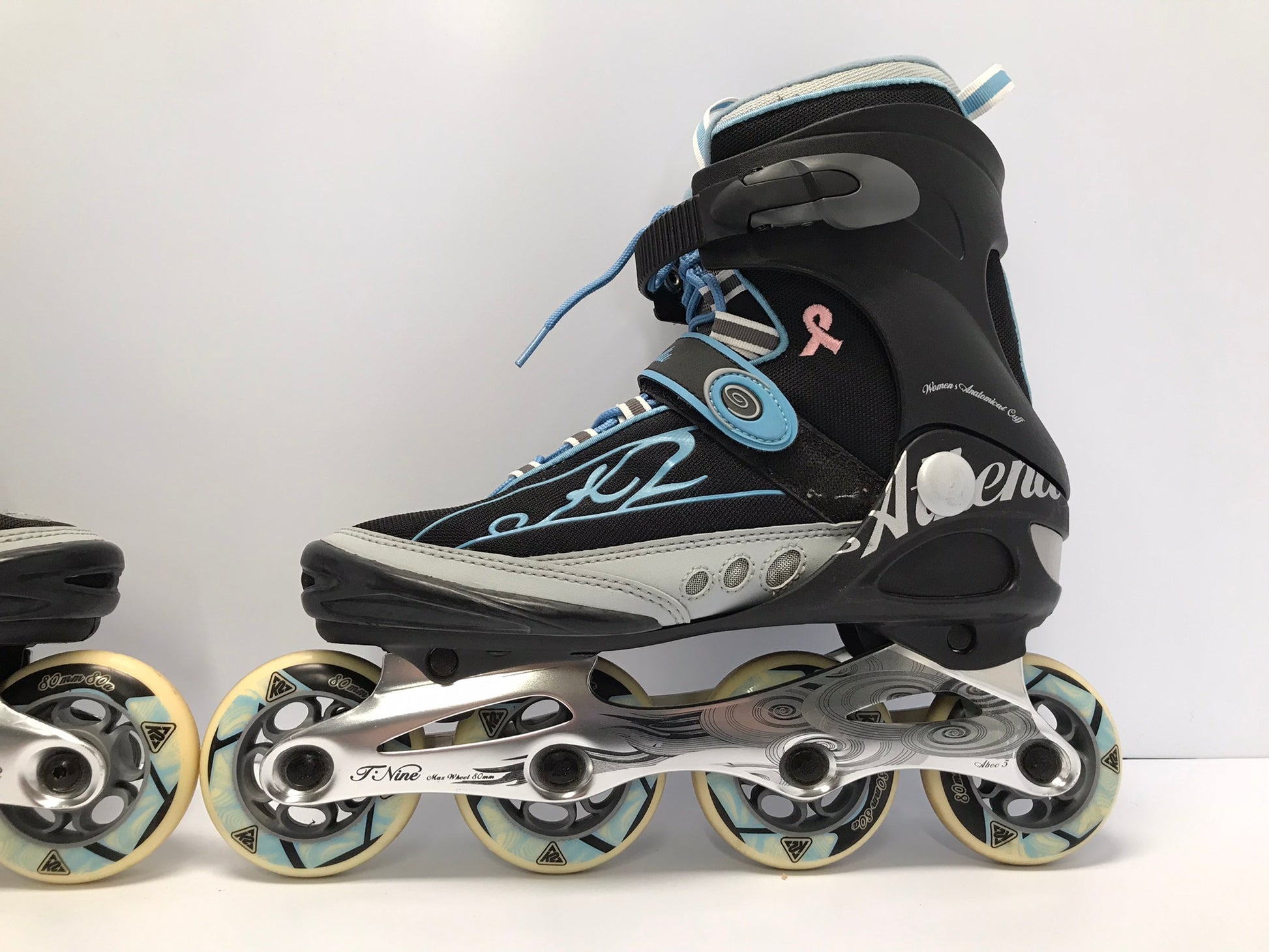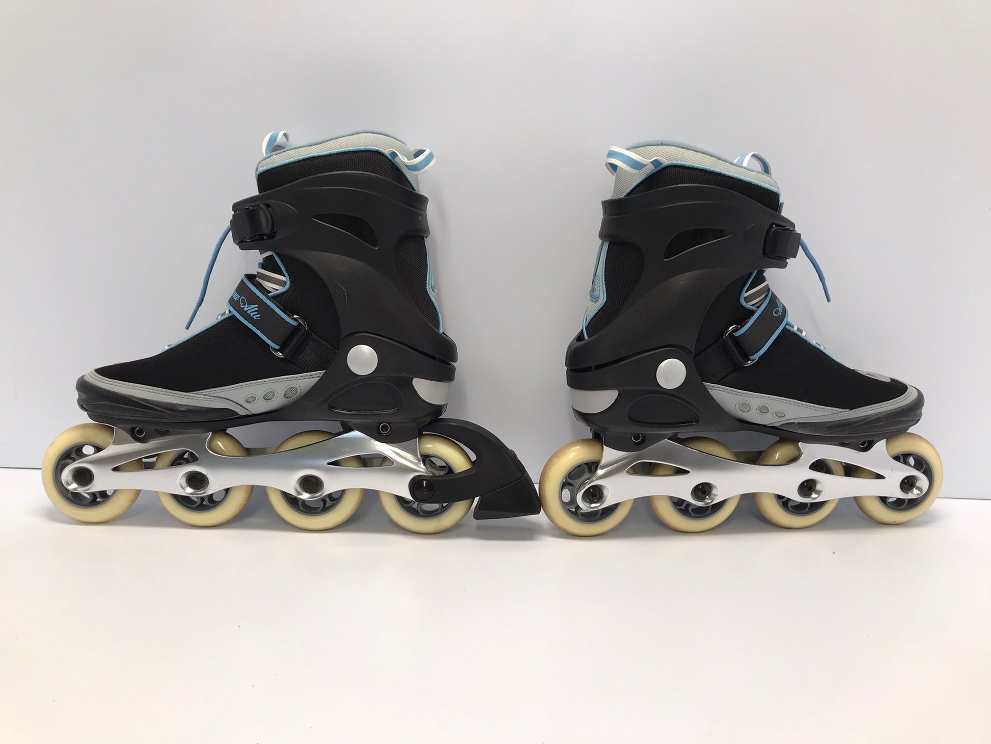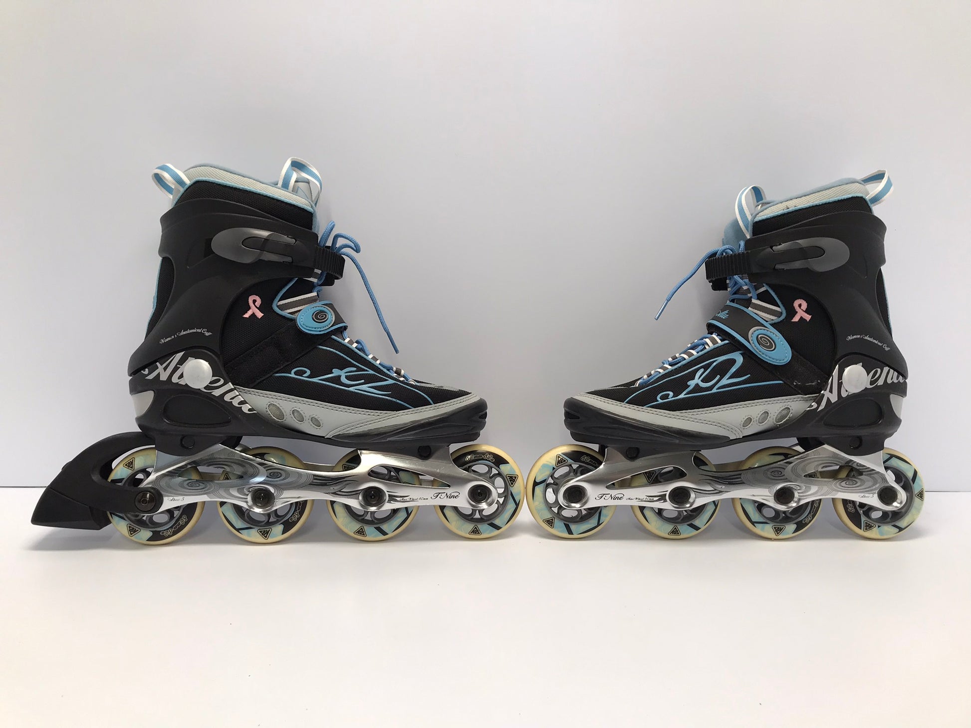 Inline Roller Skates Ladies Size 9 K-2 Black Blue With Rubber Wheels As New