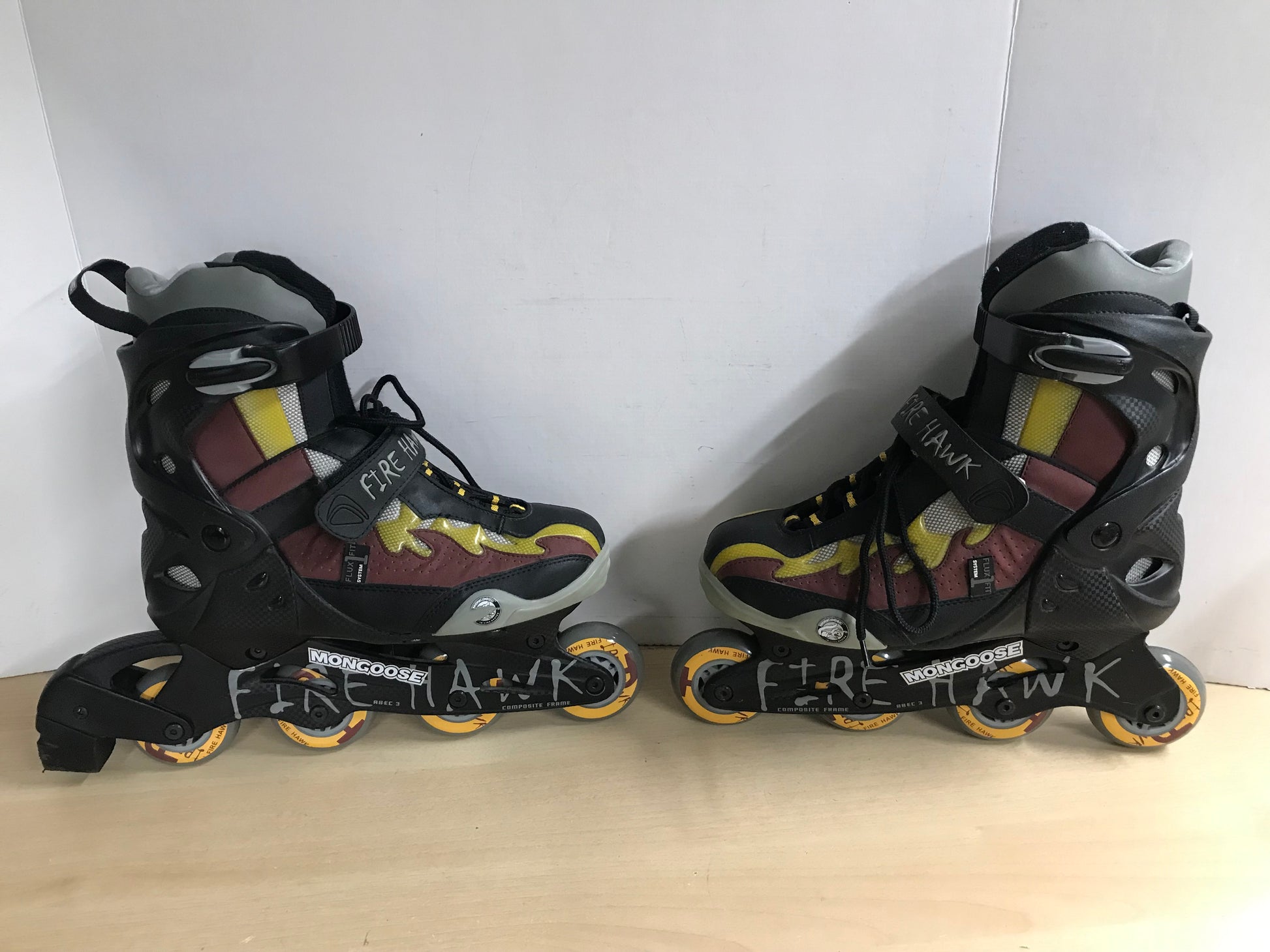 Inline Roller Skates Men's Size 10 Mongoose Rubber Wheels Black Red Gold Excellent