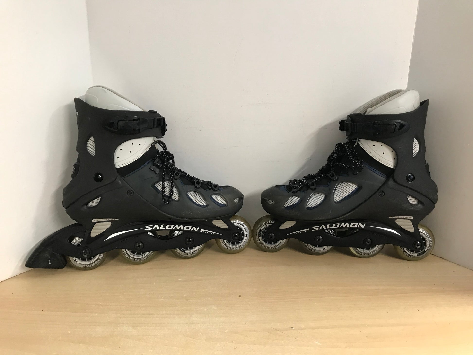 Inline Roller Skates Men's Size 12 Salomon Black Grey Blue Excellent Rubber Wheels