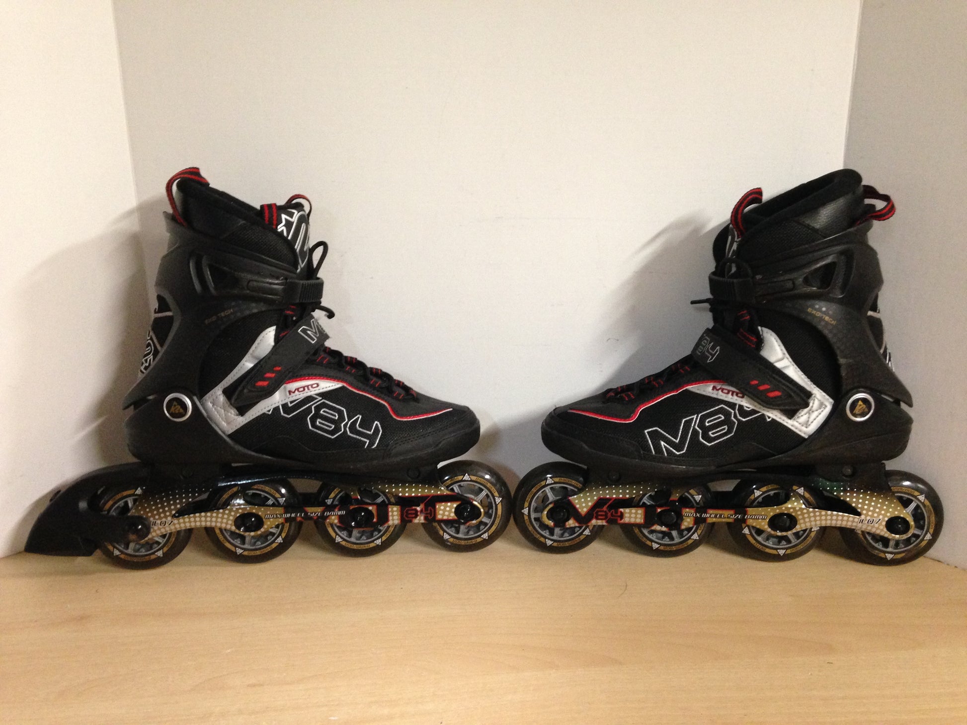 Inline Roller Skates Men's Size 9 k-2 Black Red Gold Rubber Tires