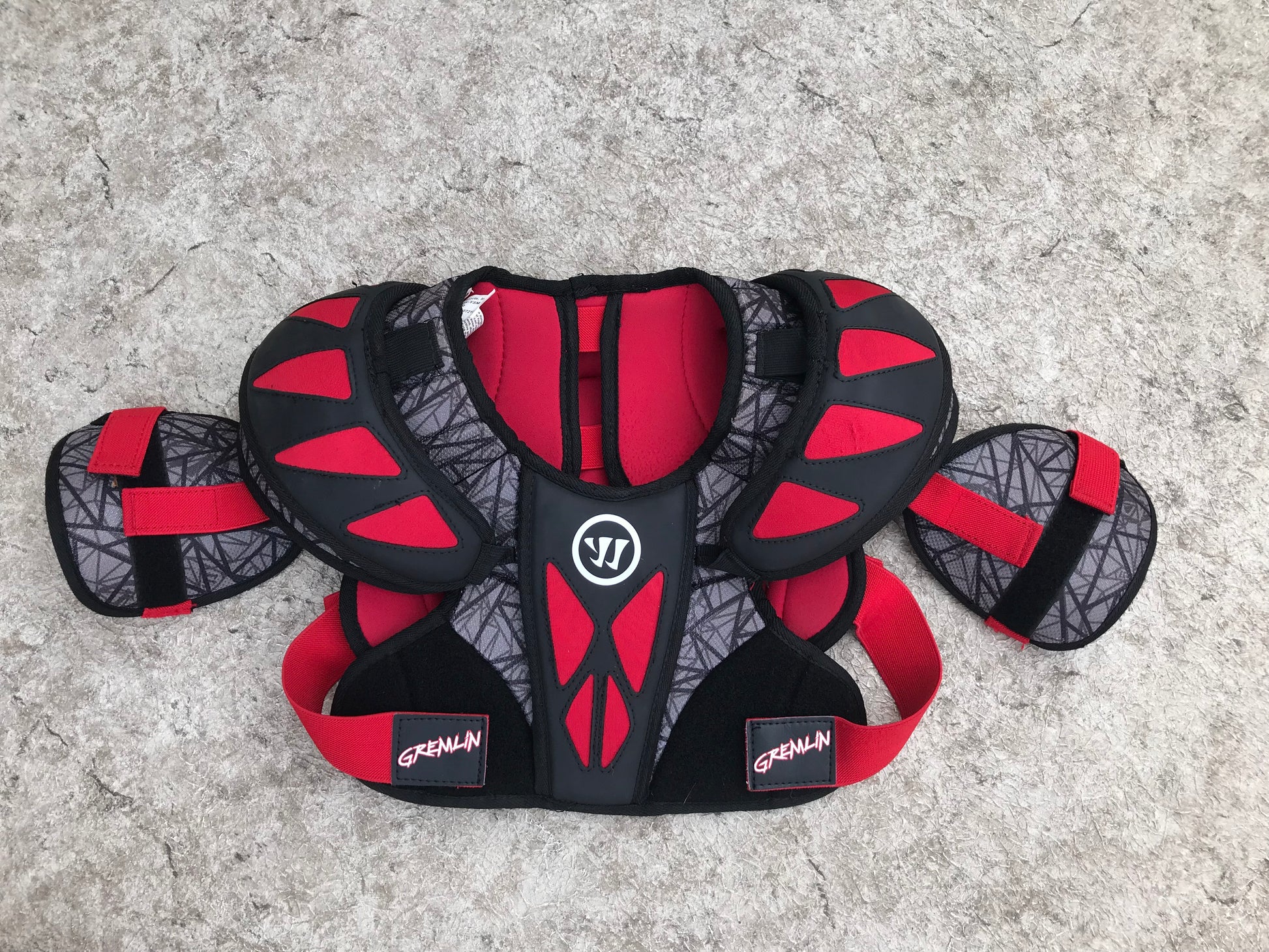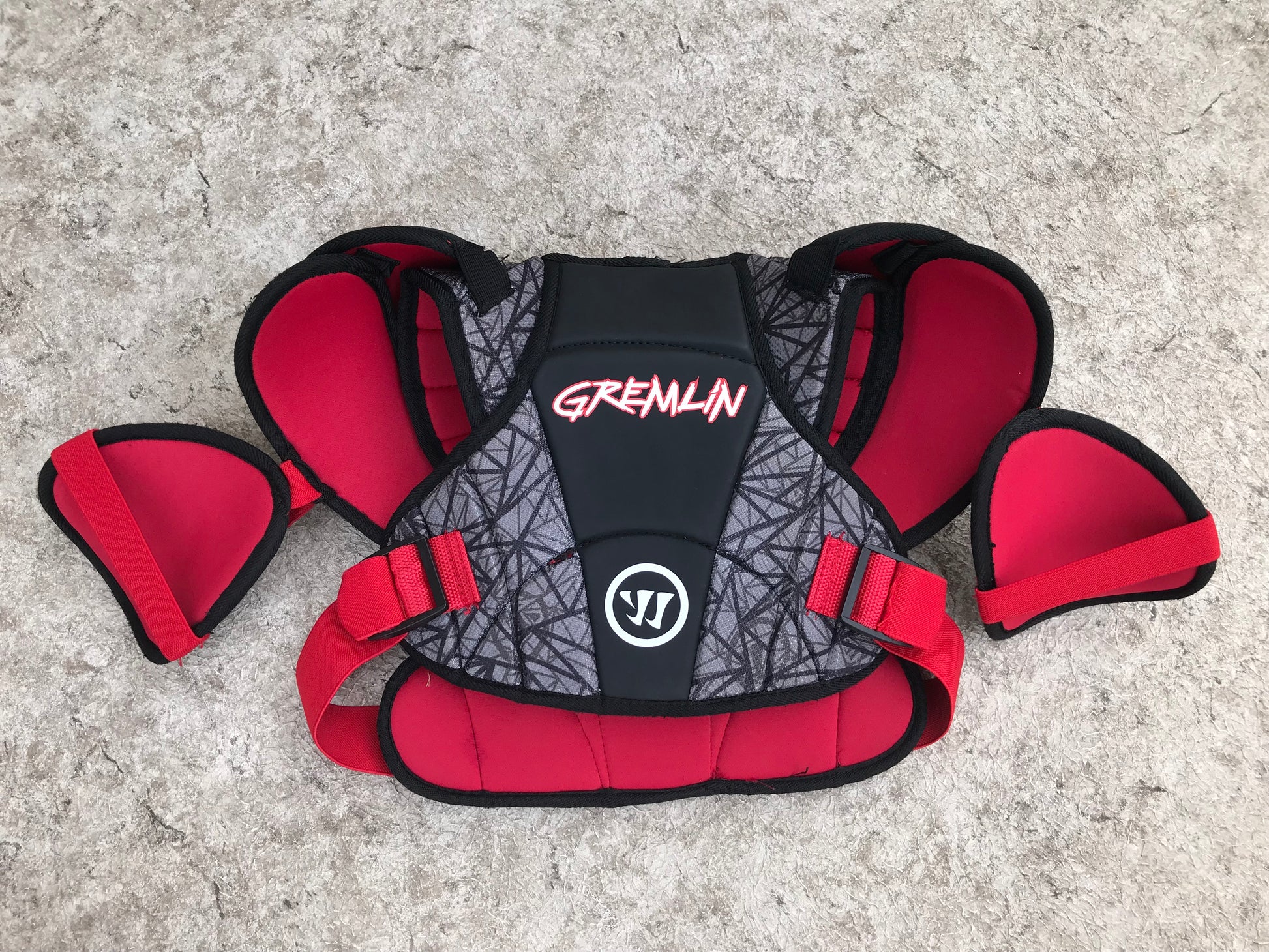 Lacrosse Chest Pad Child Size Y Medium Age 7-9 Warrior Gremlins Red Black Excellent Pt 3440