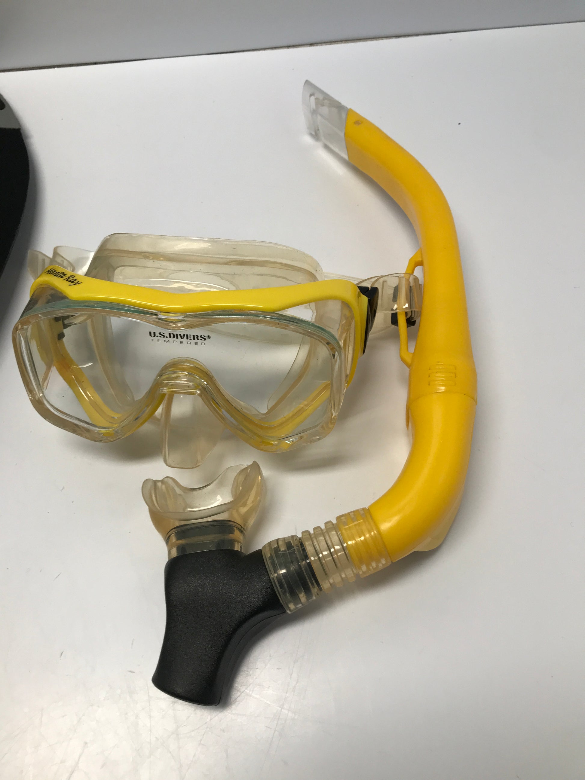 Snorkel Dive Fins Set Men's Size 9-13 Black Grey Yellow