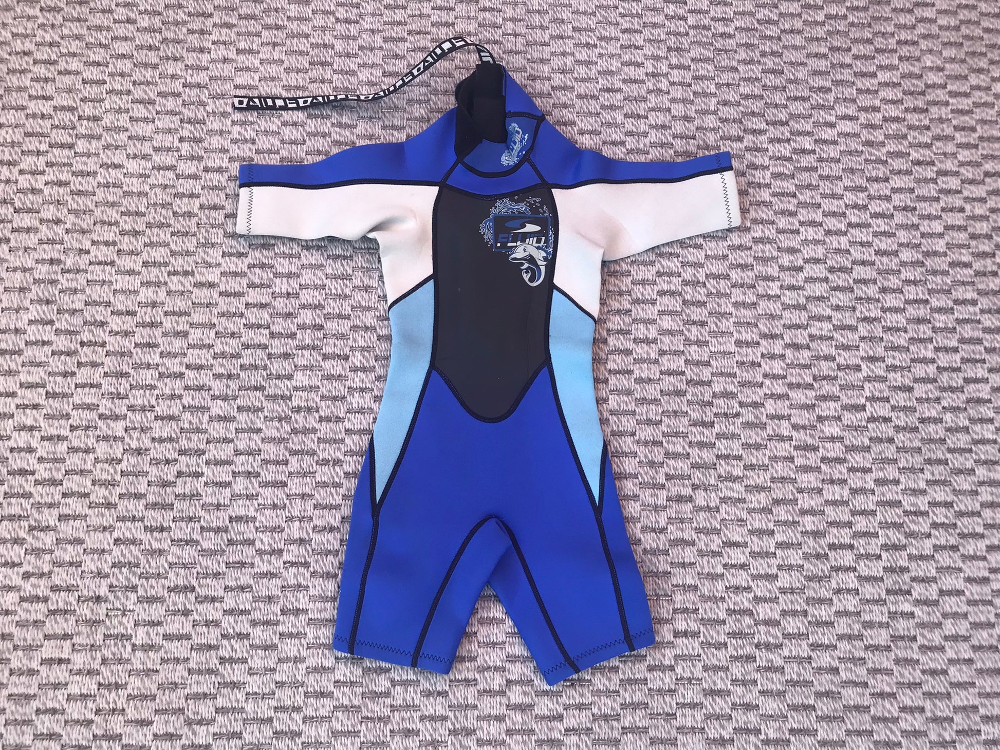 Wetsuit Child Size 4 Fluid 2-3 mm Neoprene Blue White Black Like New